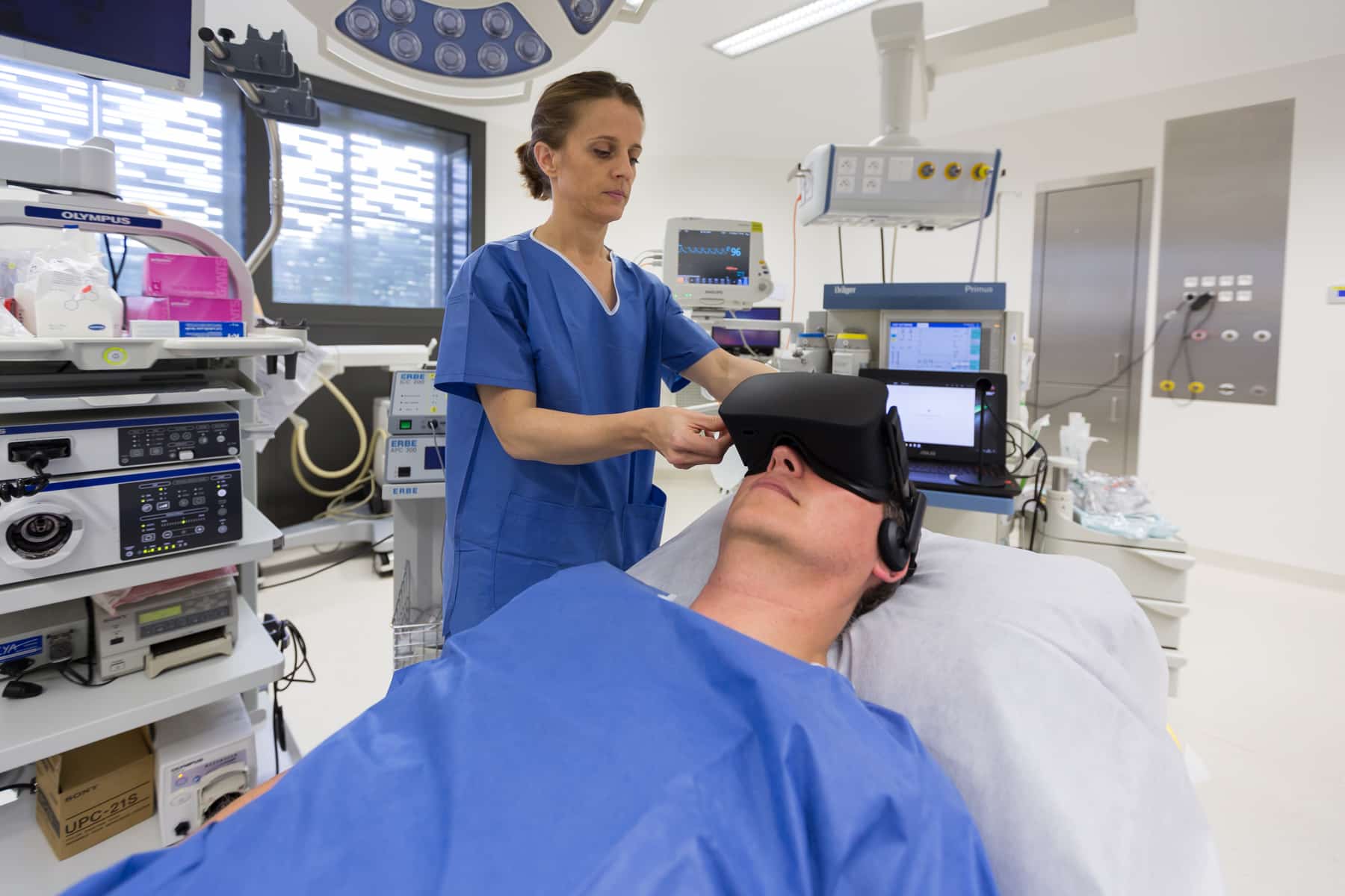 “HypnoVR sessions of 10 or 20 minutes were proposed as a preoperative alternative to premedication. It was found that patients were more relaxed when going to the procedure and this avoided them taking the anxiolytic cocktail before the anesthesia.”