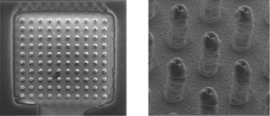 Unlike other manufacturing processes that create a smooth surface finish, the Optomec aerosol jet printer produces a rough surface on the gold micropillars. This trademark ‘stickiness’ allows the antigen to easily load onto the micropillar resulting in it being able to detect even very small amounts of antibodies. A single device costs in the range of tens of dollars to make.