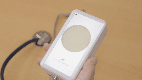 In the website’s library section, all types of heart and lung sounds are stored and available for listening along with explanations about the area of the body. Kikuzo plays only the same band as the biological frequency so it doesn’t include the electrical sounds that come through the speaker and the electrical device that is plugged into it. The speaker can also play low-frequency sounds important for heart auscultation.