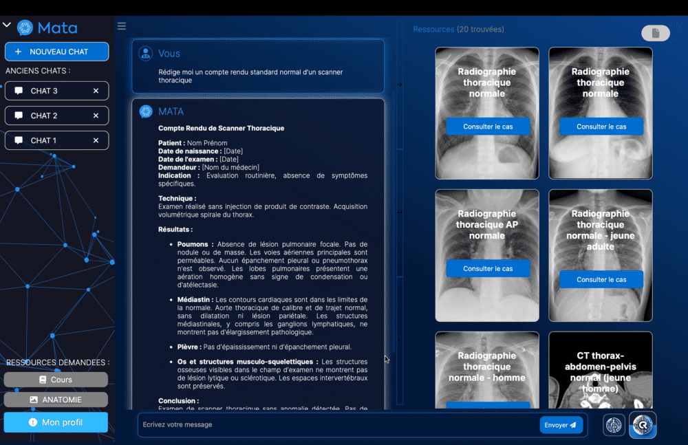 Beyond its clinical functionalities, Mata is designed as a support tool for the ongoing education of medical professionals. Recognizing the importance of lifelong learning in medicine, the platform offers a forthcoming Course Module. This resource will feature expert-led lessons by renowned university professors and hospital practitioners, providing a rich repository of knowledge for radiologists, interns, and technicians.